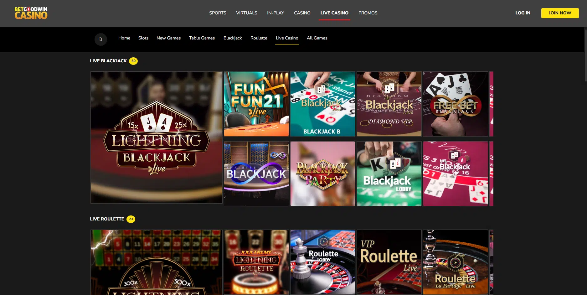 BetGoodWin Live Casino and Table Games