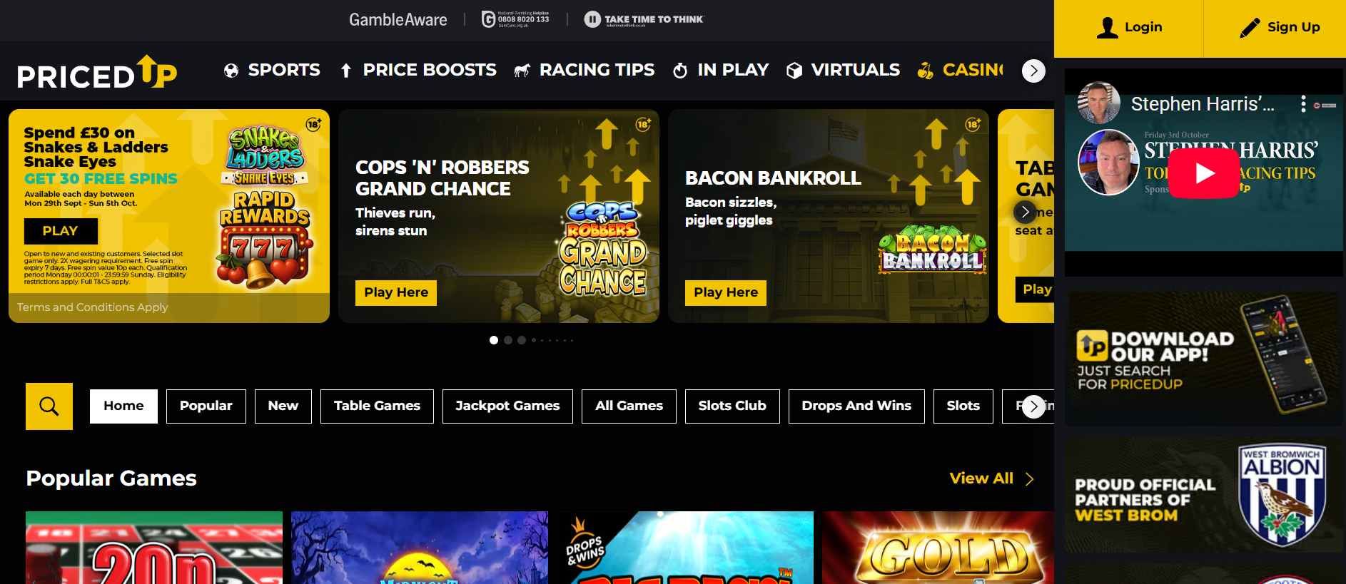 PricedUp Bet Casino Live Casino & Table Games