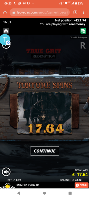 angry-scotsman Posted December 21, 2021 Posted December 21, 2021 On 12/20/2021 at 11:50 AM, Fruity Scotty said: Slot Of The Week #3 (21st Dec) - True Grit Redemption | Nolimit City Our third game to feature on Slot Of The Week is Nolimit City's latest release, True Grit Redemption. We think this is going to be a popular game with some nice volatility and a max win cap of 20,220x. You can read our review here Details: Start Date - Tuesday 21st December 5000 Spins €1 stake We will show on stream the following: How many bonuses Best Bonus Number of spins Running Profit or Loss We have 5 Merch packs to giveaway. Please comment on the thread with your guesses to the following 4 things. End profit or loss after 5000 spins, eg -€700 How many bonuses we will trigger naturally ( bonus buys don't count ) in 5000 spins. Eg 74 Best Bonus. Eg - 350x Biggest base game hit. Eg - 150x 4 winners will be picked for the closest correct answers to each question above. Example answers: The final merch pack will go to the person who posts a picture in this thread of the biggest win playing this game. They will also get a €50 amazon voucher from us. Game Info: Profit £650 16 bonuses 500x best bouns Biggest game hit 150 x On 12/20/2021 at 11:50 AM, Fruity Scotty said: .