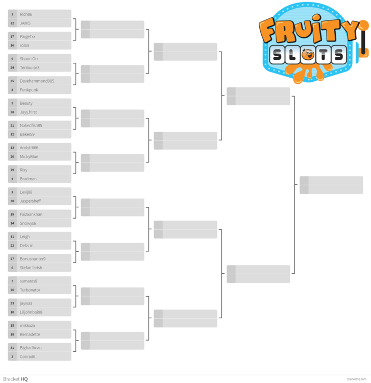 FruitySlots Posted March 25, 2020 Posted March 25, 2020 Welcome to the viewers Fruity Euro Slots Championship! With this summer’s Euros postponed we thought we would step in and set up a slot’s tournament for our viewers. In this competition, 2 people have the chance to win up to £1000 for free, that’s right, FREE! Plus, many other prizes. There will be 32 entries, so 5 rounds leading to a winner. ENTER BY MIDNIGHT SUN 5TH APIL The rules are relativity simple, anyone who would like to enter, reply to this thread with your choice of 5 slots. Please note that Wild North and Golden Colts are excluded and CANNOT be picked! You MUST also pick slots which have a free spins feature. Pick features don’t count. Example: 1. Bonanza 2. Steam Tower 3. Immortal Romance 4. Fat rabbit 5. Jamming Jars In order to make it fair for everyone since we are likely to have more than 32 entrants, we will simply use random.org to pick the 32 entrants once this thread has closed and the join date has passed. YOU MUST GET YOUR PICKS AND ENTRY IN BY MIDNIGHT SUN 5TH APIL We will use a 32-team single elimination bracket and place the entrants in order they are drawn out. In the first round we will use your 1st game choice, if you progress to the second round then we will pick your 2nd slot choice and so on and so forth. The winner of the final will win 100% of the full amount returned from the bonus of the game they picked to win the final, capped at £1000. Additional Prizes Any bonus over 100x the entrant gets £25 Amazon Voucher Any bonus over 250x the entrants gets a £100 Amazon Voucher Highest X bonus of the championships get £100 Amazon Voucher Lowest X bonus of the championships get £100 Amazon Voucher Once we have picked 32 entrants, we will then re-open the thread and allow all unsuccessful entrants to VOTE/PICK who they think will win. You must Include in your vote for a winner what amount you think their final bonus will be! Example - Joe Smith £350 Whoever then correctly picks the winner along with the closest to the bonus in a situation where multiple people have picked the same winner will also win 100% of the final bonus paid in the competition. Therefor 2 people will win 100% of the final bonus (capped at £1000). The person who wins the final, The person who has selected the winner and guessed closest to the final bonus amount once we have drawn the 32 entrants. Please pick 5 different slots! How do you progress? Its simple. In order to progress to the next round, the streamer, either Josh, Scotty or Jamie will play 100 spins each on the viewers chosen slot. Whichever viewers game manages to bonus 1st out of the 100 spins will then win and progress to the next round. For example, if Bonanza bonus's in 45 spins and Danger bonus's in 44 spins, the player who chose Danger will progress. If neither slot bonuses within 100 spins we will go on a profit + loss from the game, so whoever wins the most from their 100 spins, or lost the least from their 100 spins will progress. In the unlikely event of a tie we will play an additional 10 spins to get the final profit or loss on the game. We will play the final on a £5 stake, so the winner gets the bonus from that game at that stake. The other game stakes will vary but obviously be the same as each other for each battle. If your slot choice isn’t available on the sites, we play at then we will have to move on to your next slot choice and use that game twice if you proceed through to the next round. Tips and things to think about Pick you slots wisely. You want games that can bonus quickly or wager well to win the profit/loss element if the game doesn’t bonus. Consider your final slot choice for a nice return if you happen to get to the final. Terms and conditions Must enter by 1st April 1 entry per viewer. UK entrants only valid for cash payment. If an entrant outside the UK wins we will contact them to arrange a prize or cash payment if possible. UK only. (if a player wins who is not from the UK enters, we will contact them separately to arrange a prize) We reserve the right to amend the promotion at any time. Good luck to all who enter and chose your slots wisely!! 1 Quote