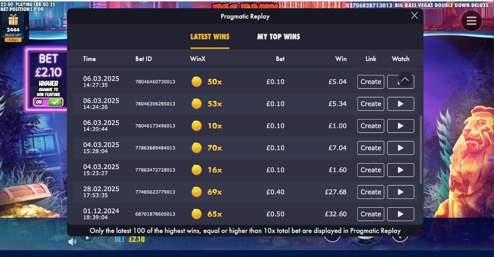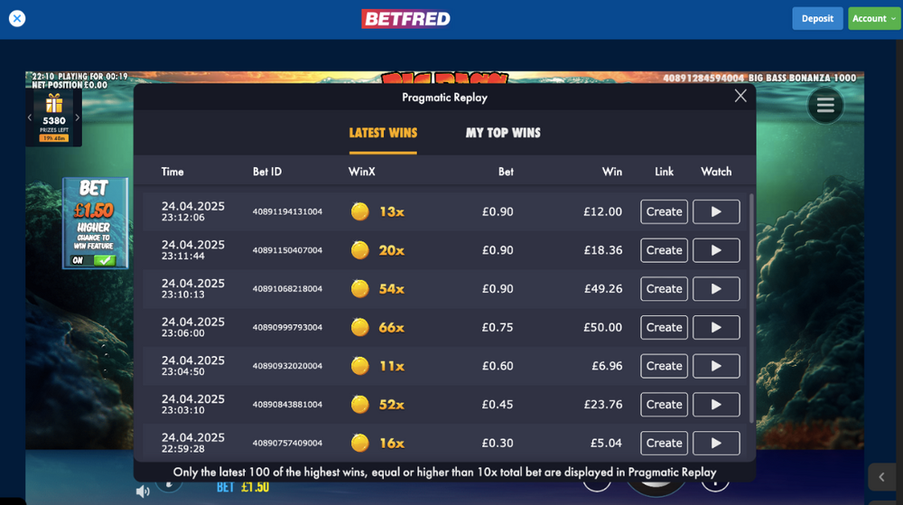 Winner of the 10 x £100 Amazon Vouchers for random entrants that have won at least 20x bet on ANY Big Bass or Dog House game are