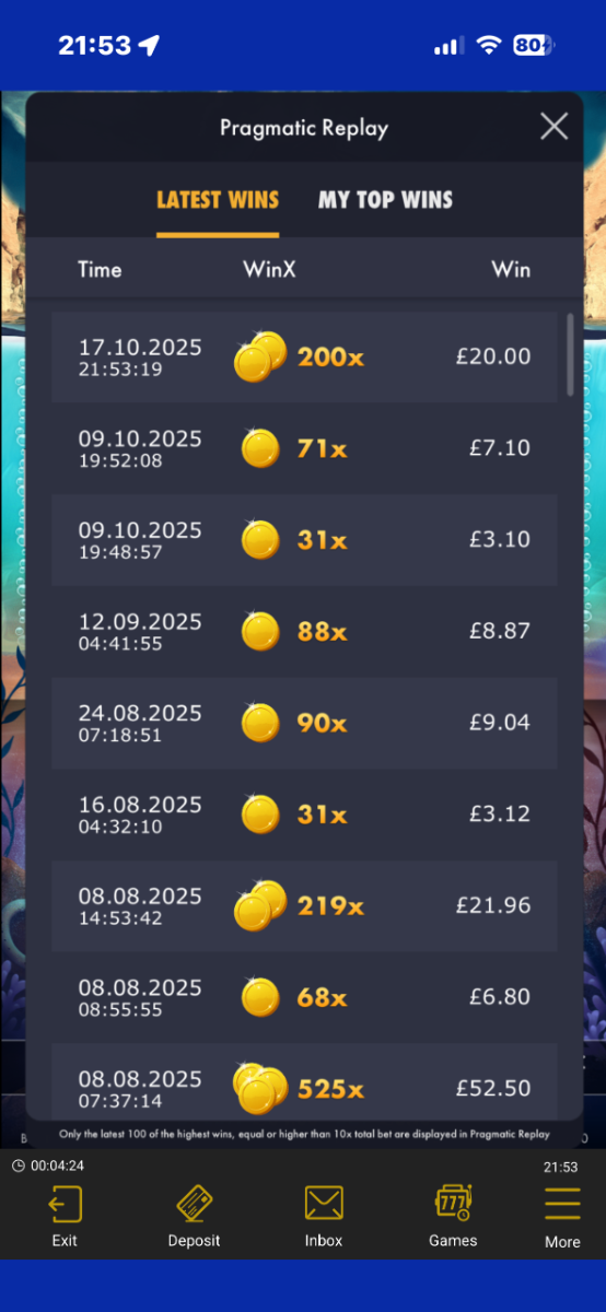 Please pay attention to the terms of the giveaway. It needs to be a casino listed on Fruity Slots, and show proof of the date of the screenshot. Duplicate screenshots are not accepted. Those without dates will not be accepted. You may accompany screenshots with a Pragmatic Play replay link, which shows the date of the win.