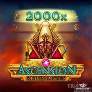 The maximum win on Ascension: Rise to Riches is 2,000x your stake. This can be achieved through the Epic Strike scatter feature (landing 9 Osiris symbols for an instant 2000x payout) or by combining large wins during the free spins round with the x2 or x3 multiplier awarded by the Bonus Wheel. -