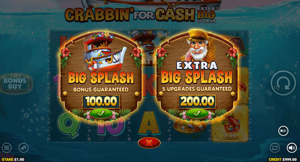 - Extra Big Splash Free Spins – Guarantees that 5 Upgrade Picks will be awarded during the Pick-a-Crustacean Feature for 200x your bet.