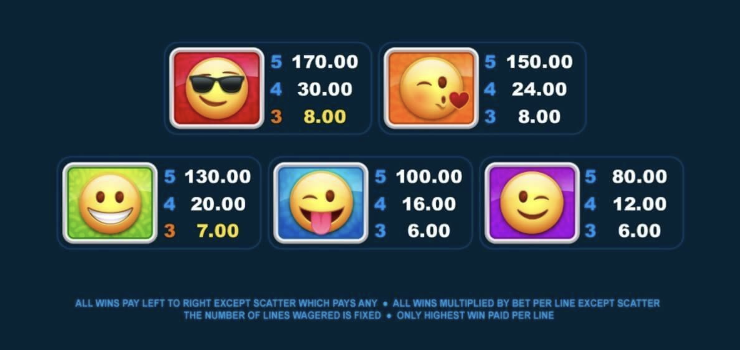 Emoticoins is a 5-reel, 30 payline slot with fixed paylines. The minimum bet is £0.30 and the maximum bet is £300, making it accessible to players with various bankroll sizes. The game was released on 2 August 2017 and is fully mobile compatible. -