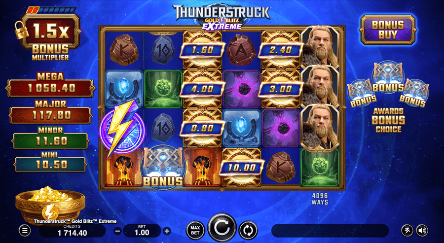 Yes, Gold Blitz Extreme includes a Bonus Buy feature available in select jurisdictions. This premium feature allows players to trigger the bonus round directly without waiting for scatter triggers. Costs scale with the current Bonus Multiplier level: 30x bet (three scatters), 50x bet (four scatters), 80x bet (five scatters), or 120x bet (six scatters). Using Bonus Buy also boosts the RTP to 96.25%, rewarding premium players. -