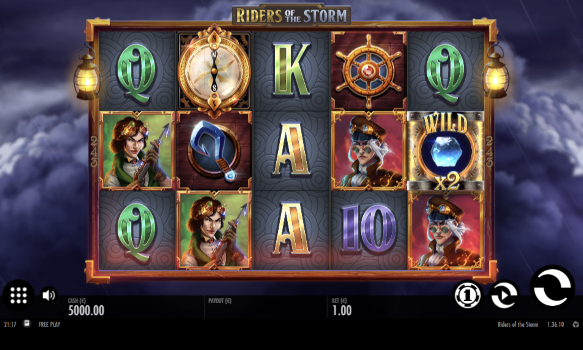 Riders of the Storm spins across a standard 5-reel, 3-row grid with 243 paylines, allowing winning combinations to form left to right across any aligned symbols. The reels feature character-specific artwork-the Engineer, Huntress, and Captain each contributing to the steampunk aesthetic that sets this release apart visually. During base game spins, you’ll encounter regular symbols that climb the paytable hierarchy, but the real interest lies in how features activate.