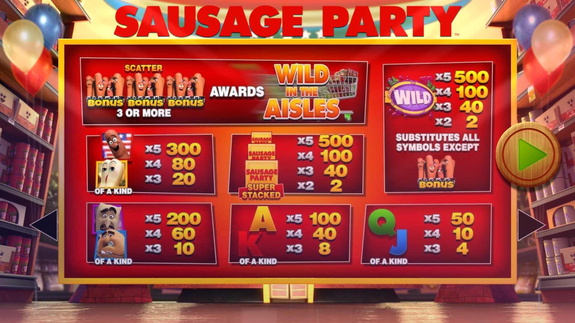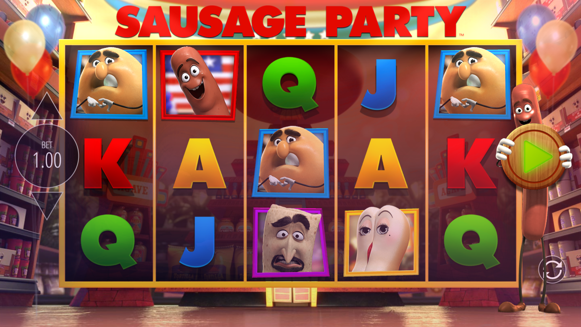 Yes, Sausage Party is a branded slot game developed by Blueprint Gaming based on the popular animated film of the same name. The game features characters and animations lifted directly from the movie, and is set inside a supermarket with the same adult humour and chaos from the film. -